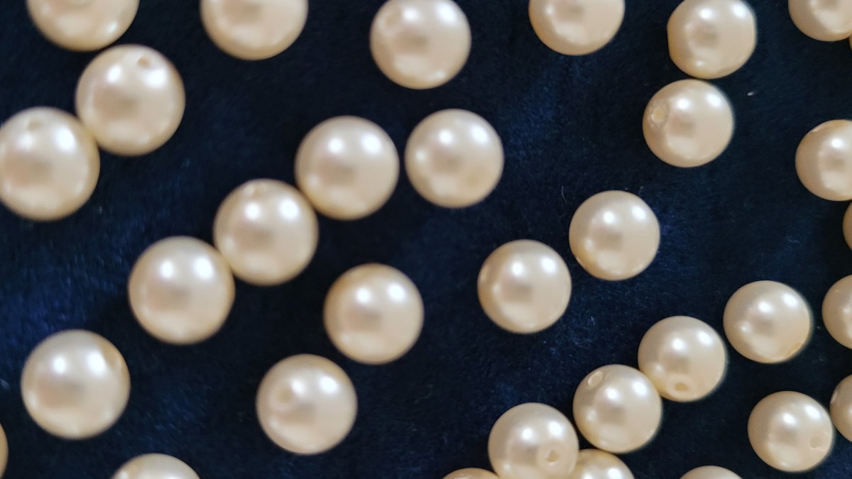 Unlike a lot of faux pearls made of paste or resin and so on, they are also made in a way that mimics the formation of a natural pearl: they have a “nucleus” (a lead-free crystal base) and layers of nacre are built up around it until they reach the required size and shape. I’m sometimes tempted to try splitting one open to see what it looks like inside, but I’ve not been brave enough yet. I say ‘brave’, but that’d be one less pearl to string on a necklace or bracelet, and I’m not about to waste good materials here.