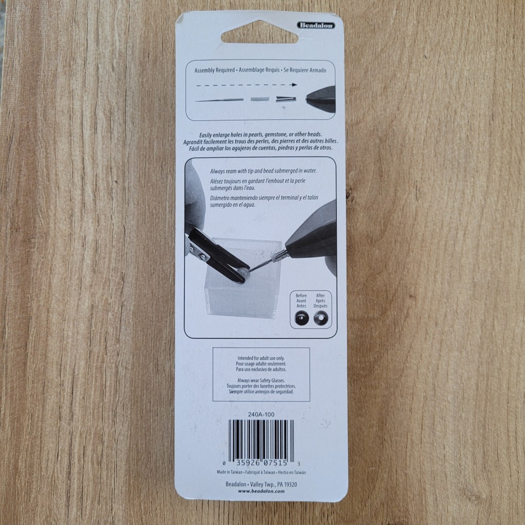 I bought this bead reamer because I love a gadget, and I use beads in pretty much every piece of jewellery I make. But also, because I’m still in the fine tuning stages of Kit Prep, and my old one is quite worn down now.