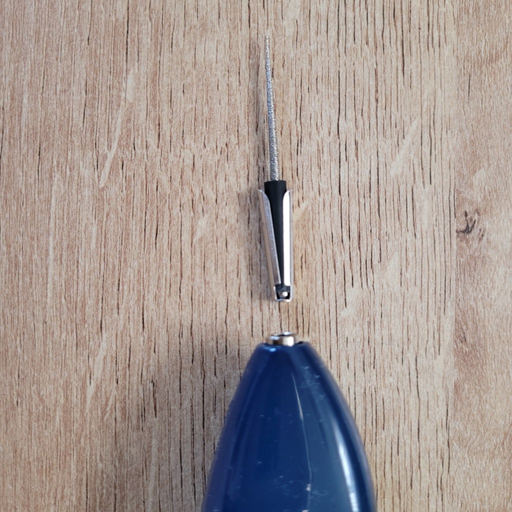 And so comes the need for a bead reamer. Basically a long, thin, round tapered file for, well, filing away at the inside of a bead. And this one is battery powered, because why not? Actually, there is a point: it’s to get through the process more quickly.