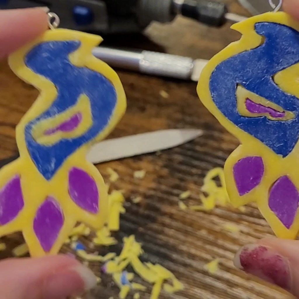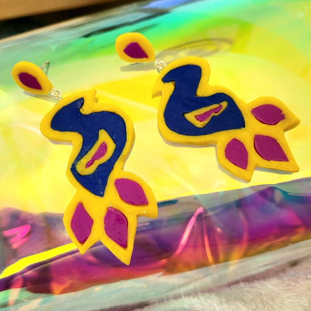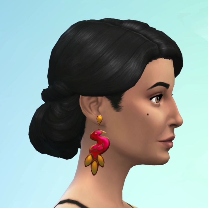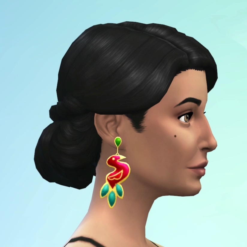 If I did do it again – making this pair of earrings, that is, not just something from the game – my main aim would be to make sure the earrings look like mirror-images of each other. This pair are definitely sisters, not twins. I imagine that’s where learning to make a cane would come in very handy. Other than that, I would add more movement. Maybe thinner layers or separating the tail feathers. They’d make nice clicky-clacky sounds too, actually. Yeah, I’d do that.
